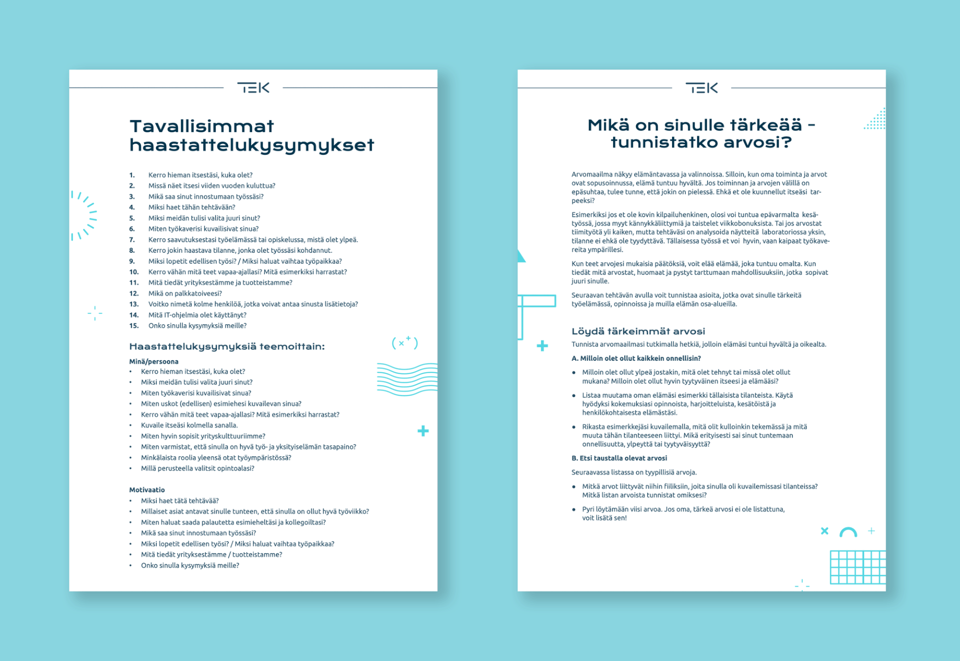 TEKin visuaalinen ilme päivitettiin uuteen uskoon keväällä 2021. Pääsin mukaan päivittämään TEKin materiaaleja uuden ilmeen mukaisiksi Art Director Helena Hagbergin avuksi.